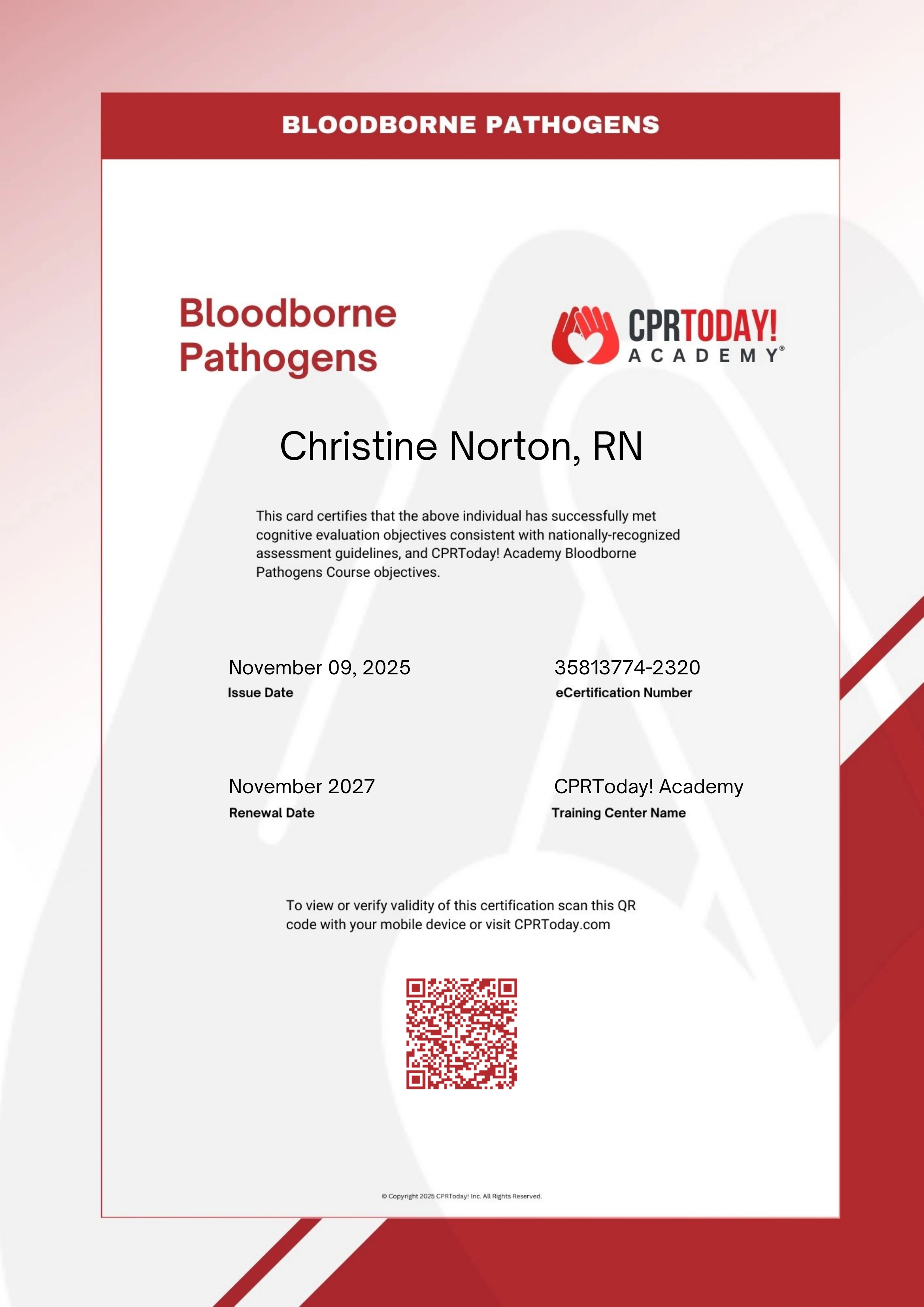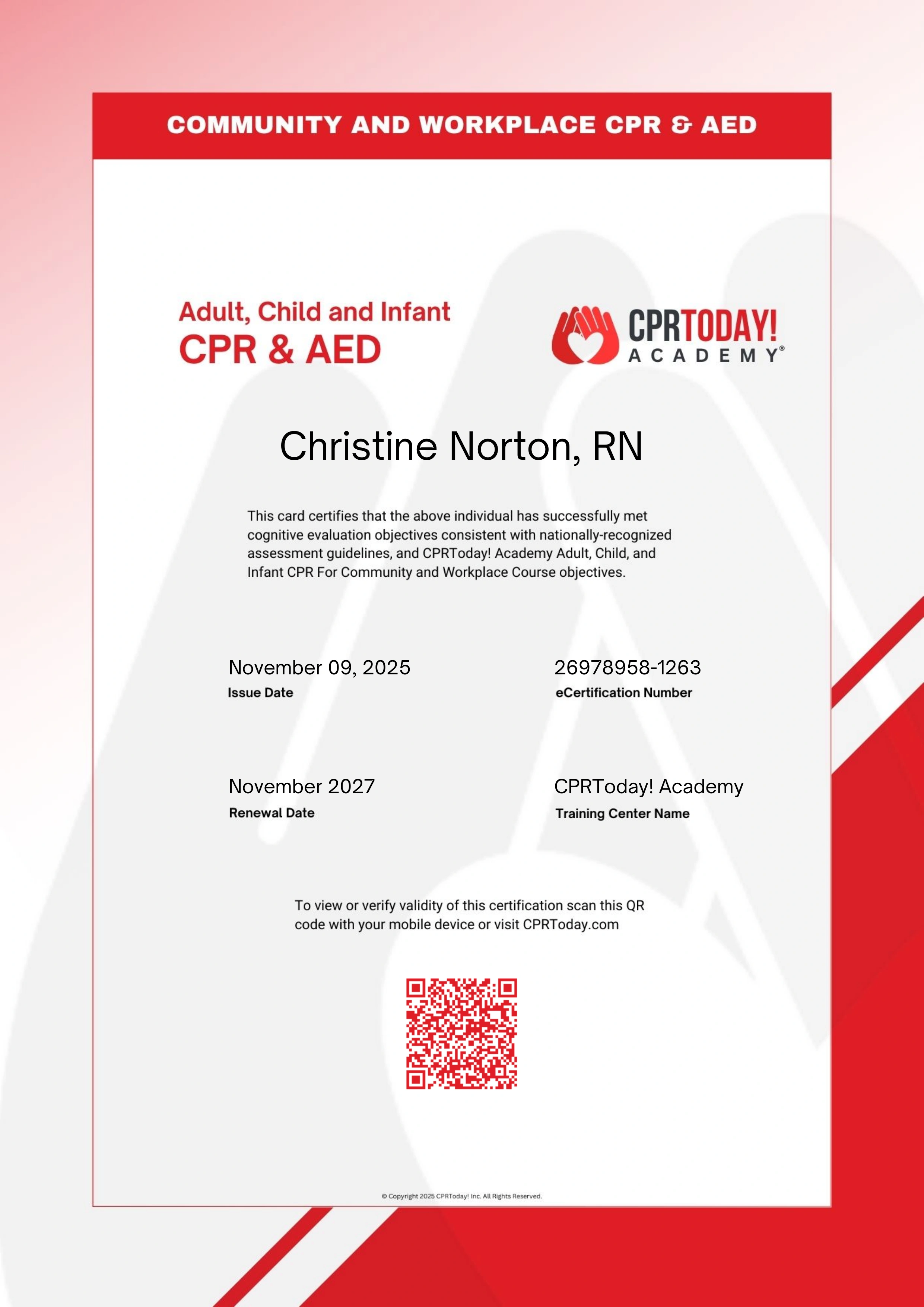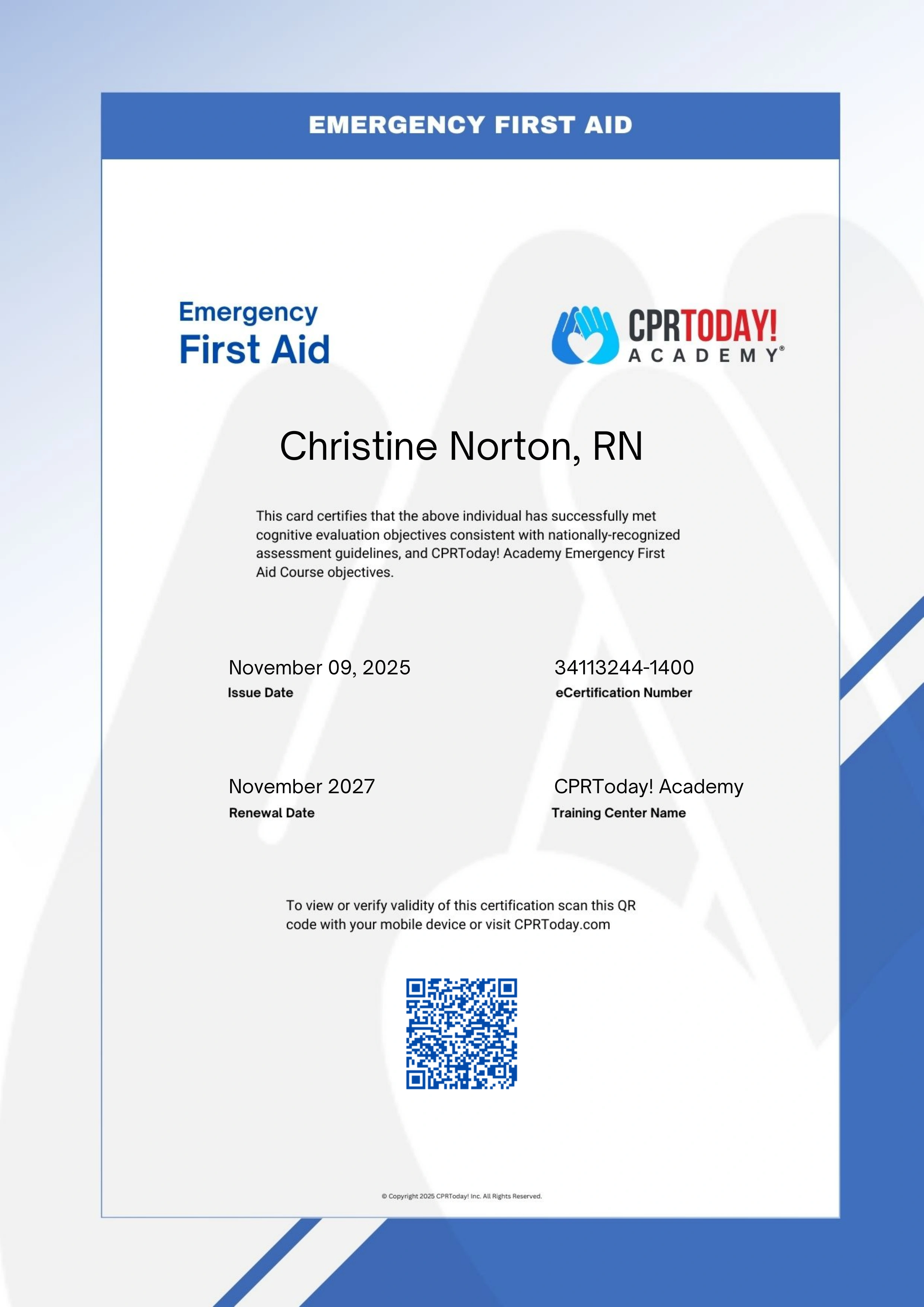 Train on your schedule, pass with confidence, and walk away with certification you can trust. If you need certification for work or school, simply pass your exam, then buy and instantly download your official CPRToday! Certificate Of Completion — plus a wallet card as a bonus.